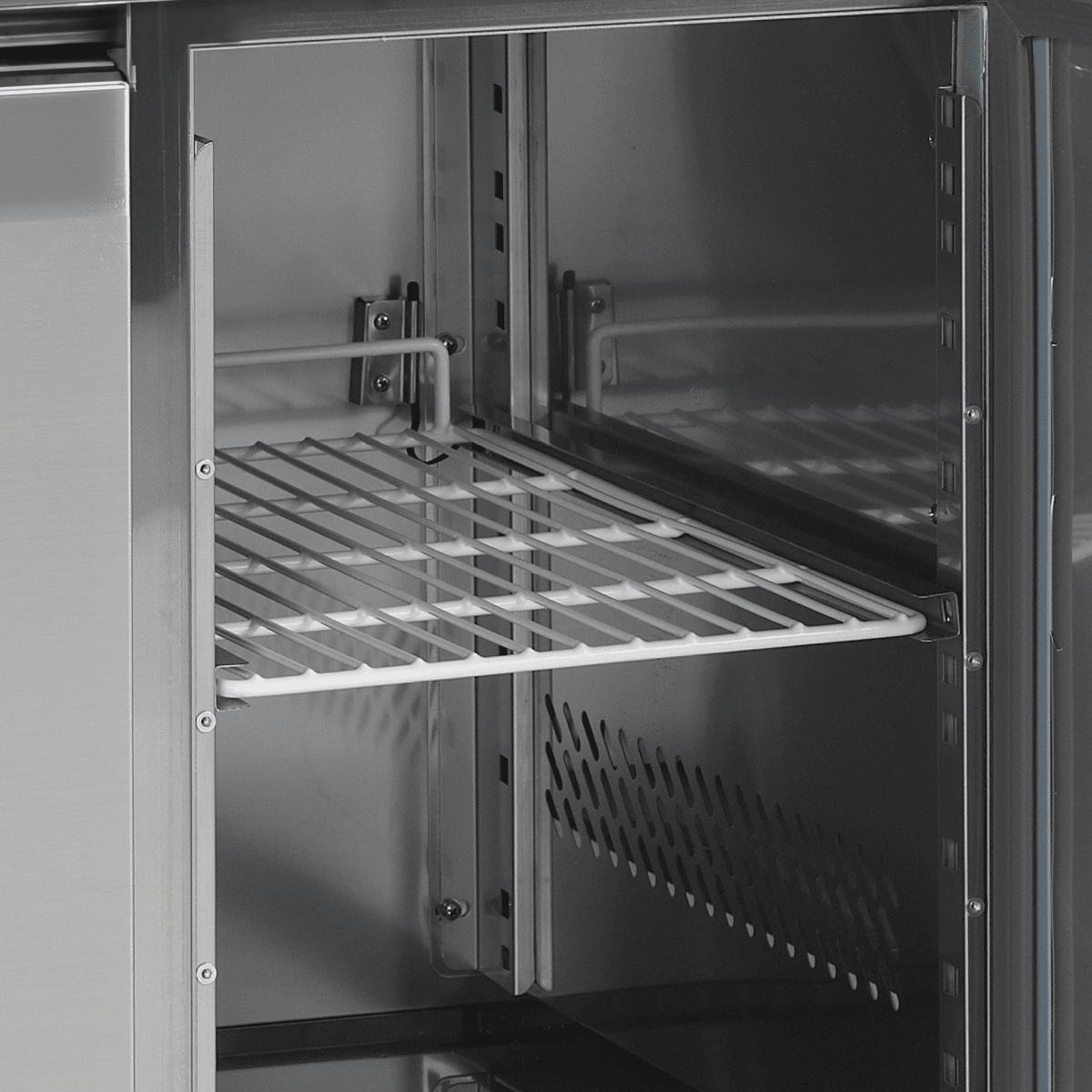 Produktbeskrivning:The CF range of counter freezers in SS304 stainless steel is made for professional kitchens and therefore has GN1/1 dimensions. The counters are available in several sizes from 2-4 doors. You can choose between models with a removable tabletop with or without a splashback. They all have ventilated cooling to ensure an even and steady temperature.