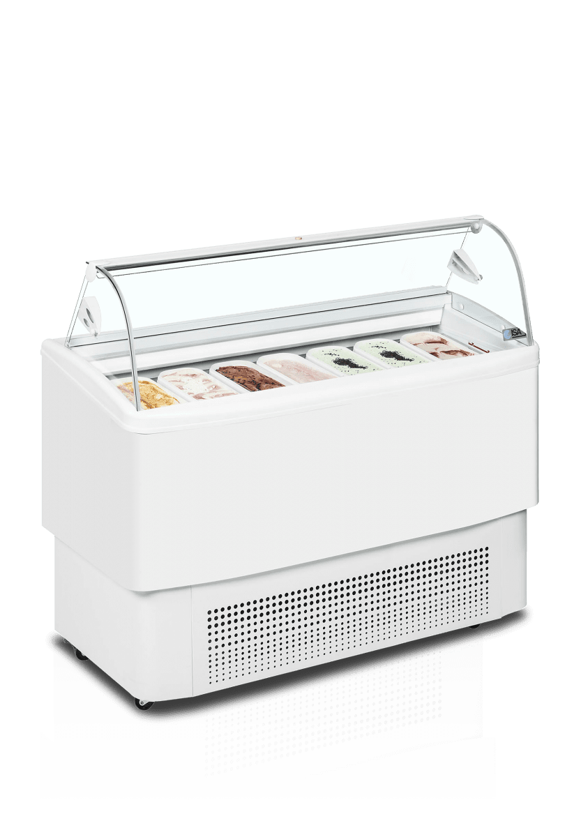 Produktbeskrivning:Fiji-serien med frysar för skopglass finns i storlekar för 4, 6 eller 7 Napoli-plåtar. Med ett djup på endast 630 mm är denna frys kompakt och idealisk för mindre utrymmen. Denna displayfrys för glass är utrustad med ett ventilerat kylsystem som är perfekt för att bevara glassens kvalitet och konsistens. Den är dessutom försedd med svänghjul för enkel rörlighet, LED-innerbelysning och en praktisk nedfällbar serveringslucka på baksidan.